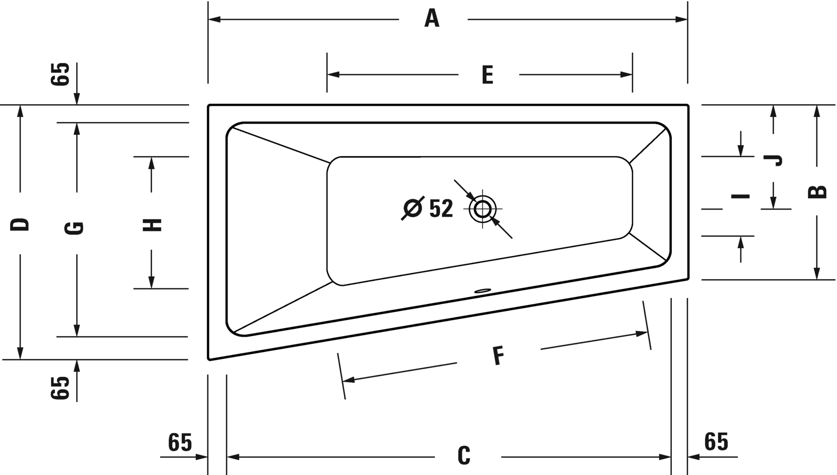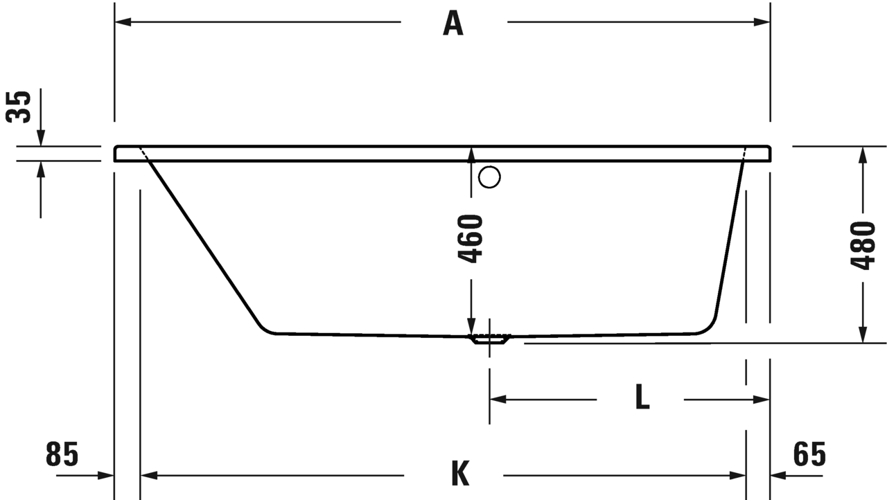 Dette Asymmetriske badekar er en hybrid mellem et hjørne- og et rektangulært badekar og byder på god rummelighed.