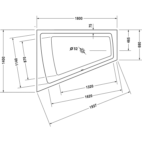 Duravit Paiova hjørnebadekar 1800x1400x485 i hvid til indmuring