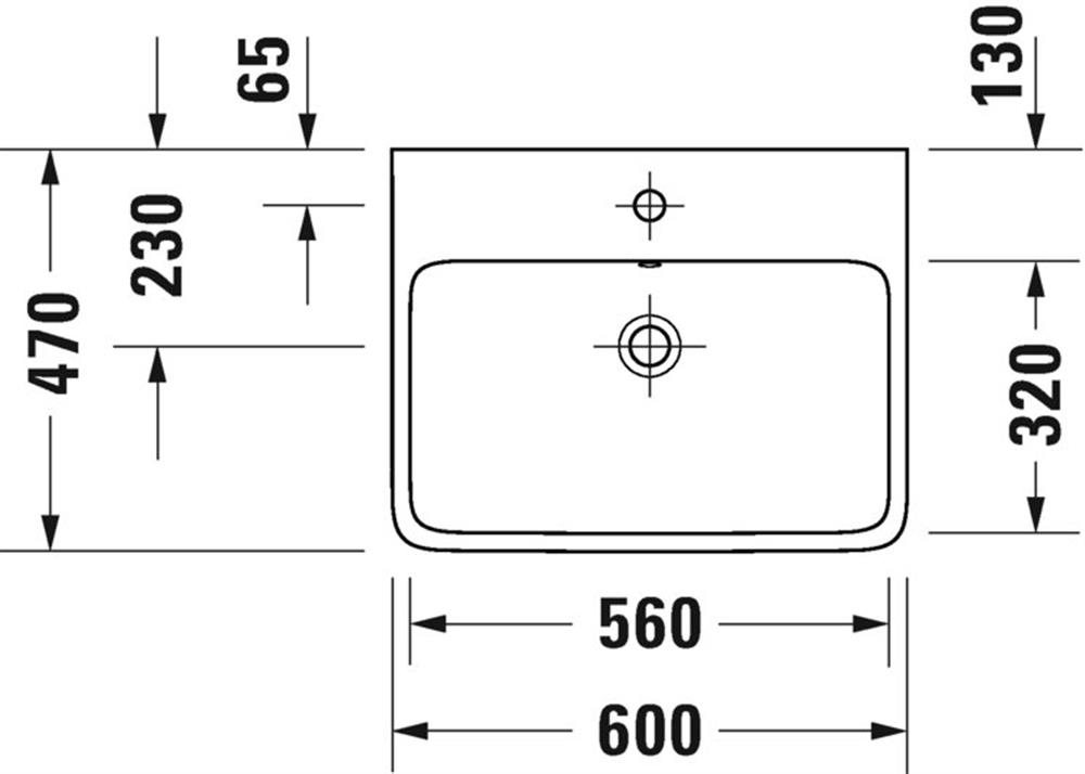 Duravit Qatego håndvask 600x470 mm med hanehul og overløb til vægmontering, hvid