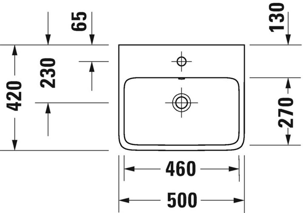 Duravit Qatego håndvask 500x420 mm med hanehul og overløb til vægmontering, hvid
