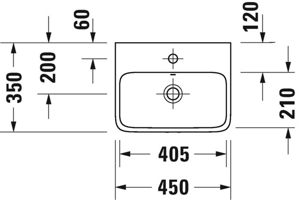 Duravit Qatego håndvask 450x350 mm med hanehul og overløb til vægmontering, hvid
