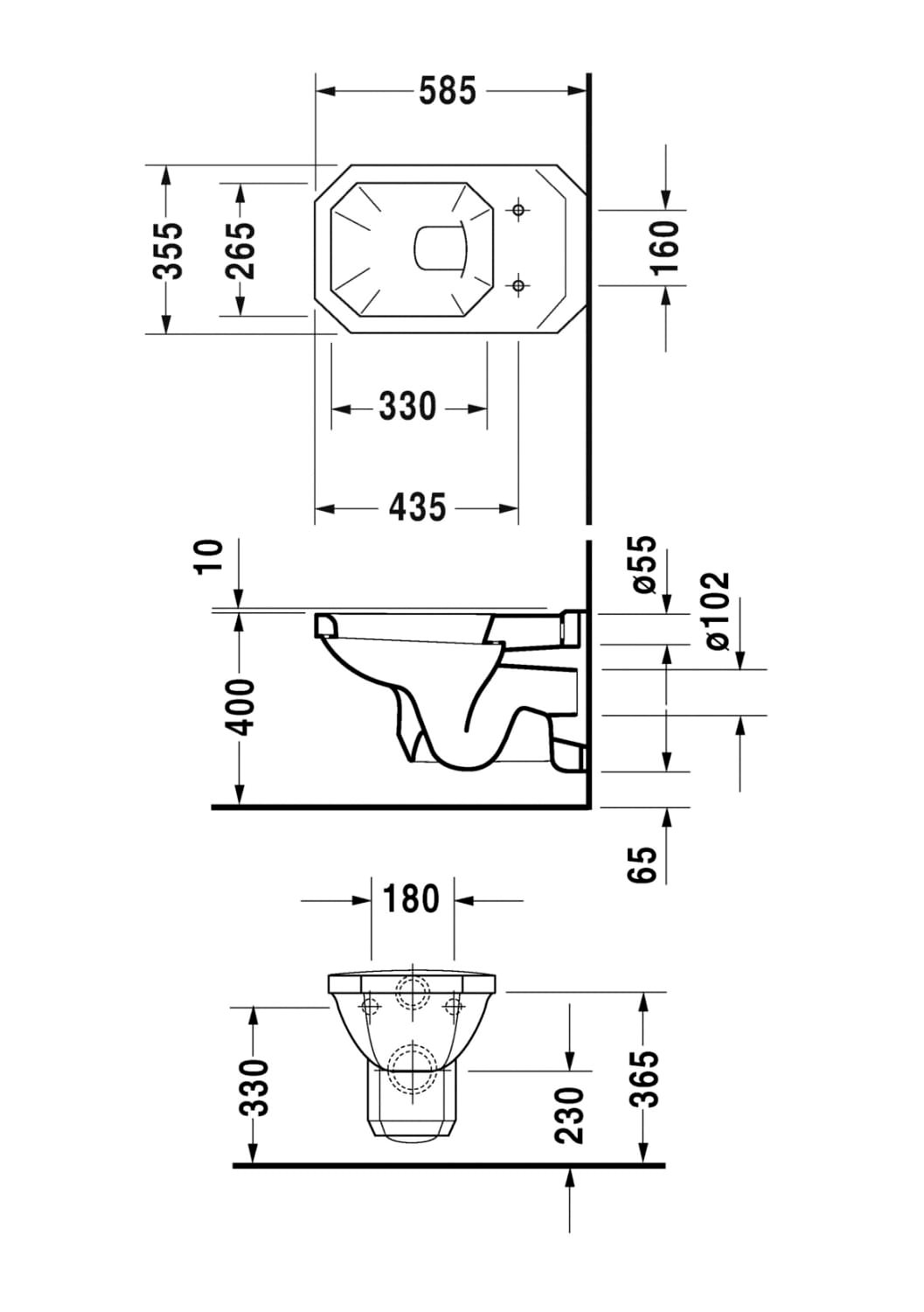 Duravit Serie 1930 væghængt toilet.  Farve: Hvid. Består af følgende nr. 0182090000. Ekskl. sæde