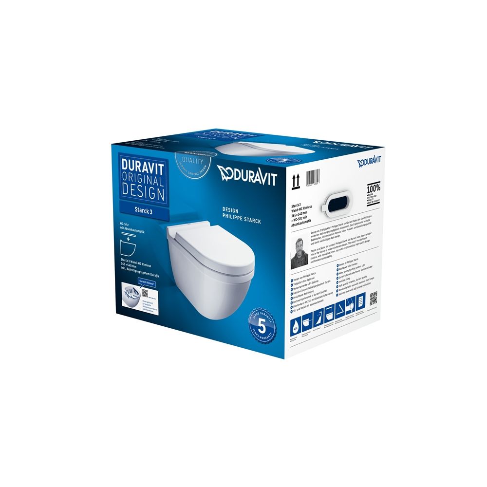 Duravit Starck 3 væghængt toilet uden skyllekant med softclose sæde