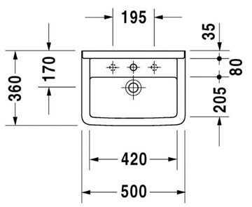 Duravit Starck 3 Håndvask. Med overløb og ét hanehul. Mål: 500 x 360 mm (passer sammen med halvsøjle nr. 2)