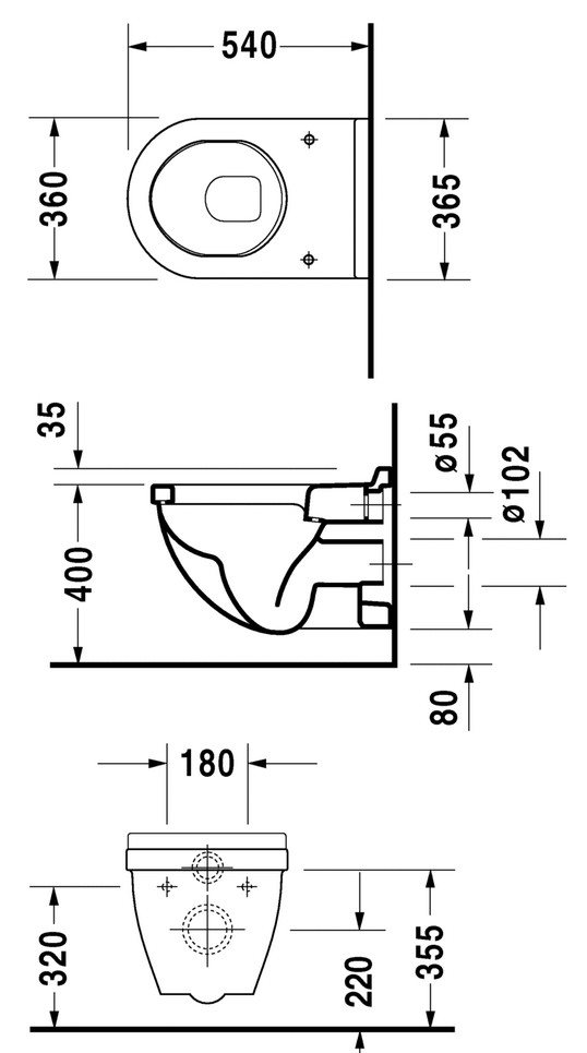 Duravit Starck 3 hængeskål. Mål: 360 x 540 mm. Består af  numre: 2200090000 (hængeskål) Passer til eksempelvis til Geberit cisterner (se under toiletter og klik på Geberit cisterner.