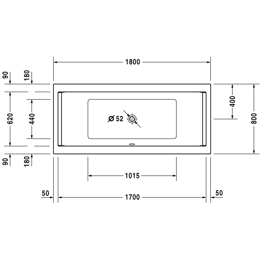 Duravit Starck badekar, for indbygning eller panel - 1800 x 800 mm