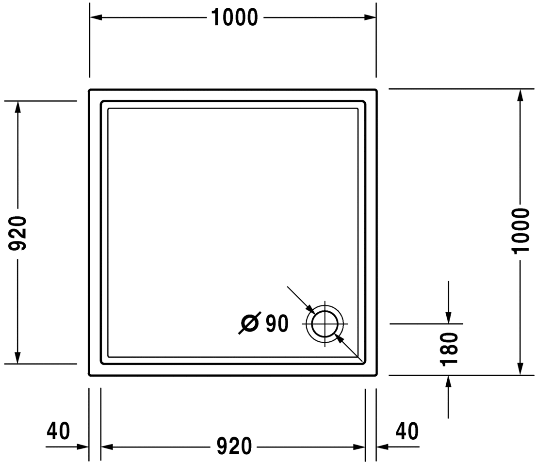 Duravit Starck Slimline brusekar - 1000 x 1000 mm - Højde 50 mm #720116