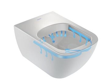 Toiletter fra Duravit med åben skylle-rand (Rimless) betyder, at skyllekanten er fjernet, så skidt og snavs ikke længere kan gennem sig under denne. Dette øger rengøringsvenligheden væsentlig.