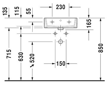Flot håndvask til vægmontering - denne væghængte vask til badeværelset monteres med bolte. For stabil befæstigelse anbefaler vi monteringsbolte med flangemøtrik og bøsninger af nylon, da de har stor styrke og skåner porcelænet, da der ikke er direkte kontakt mellem skruer og porcelæn.