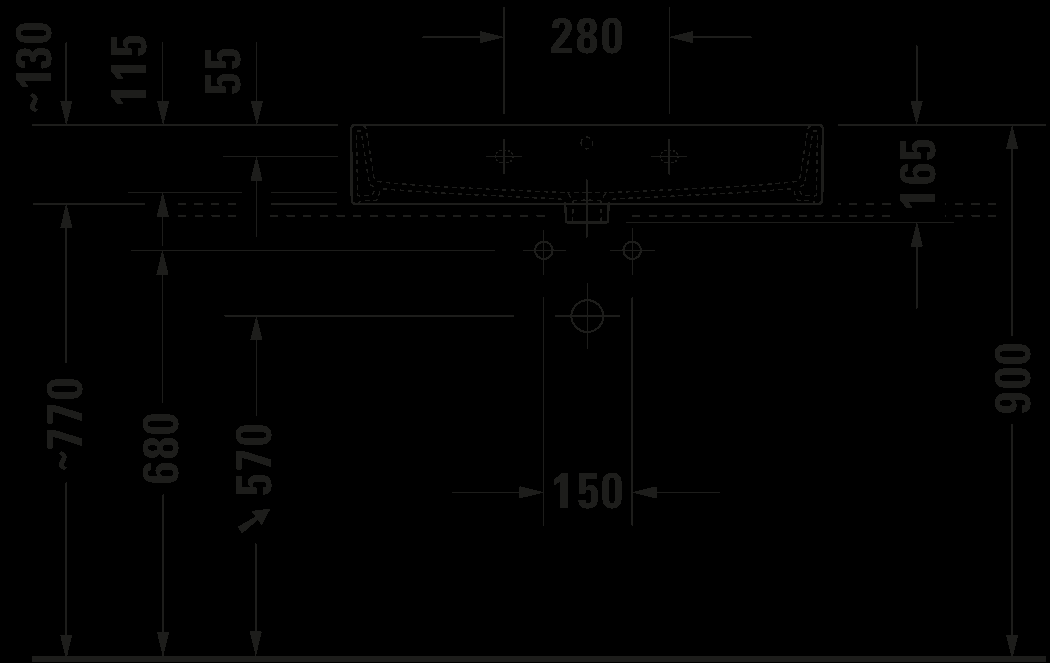 Duravit Vero vask 60x47cm, sleben underkant med hanehul