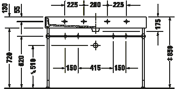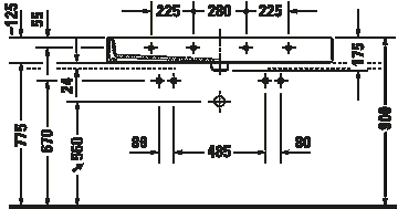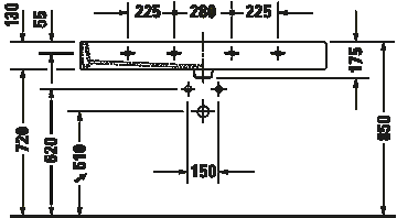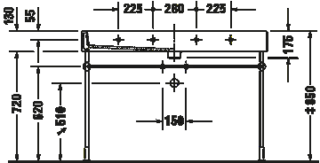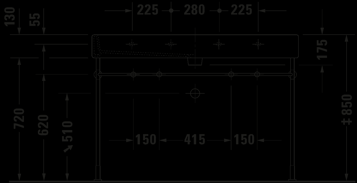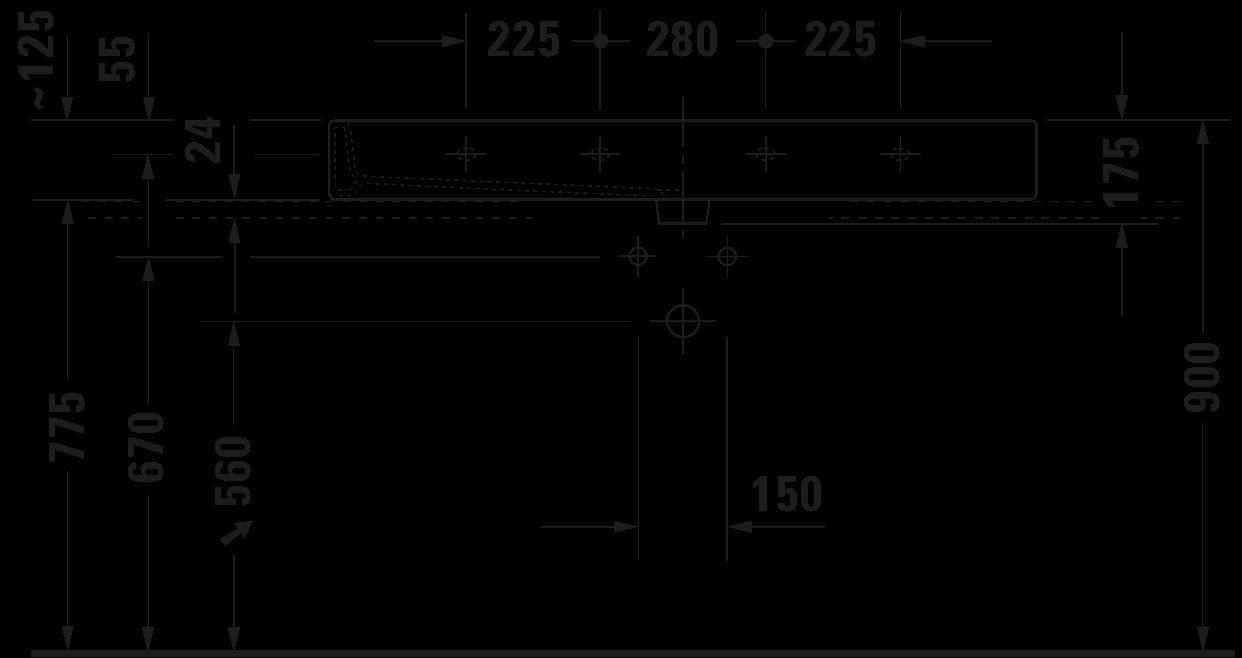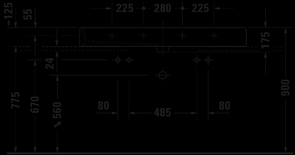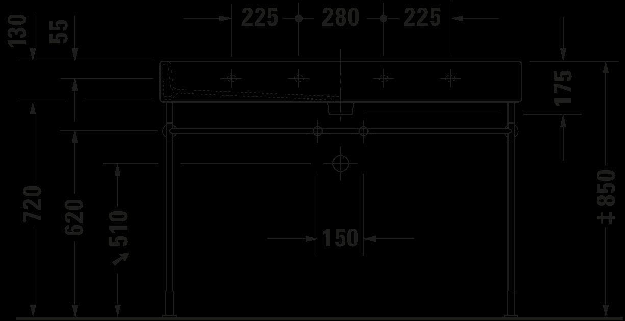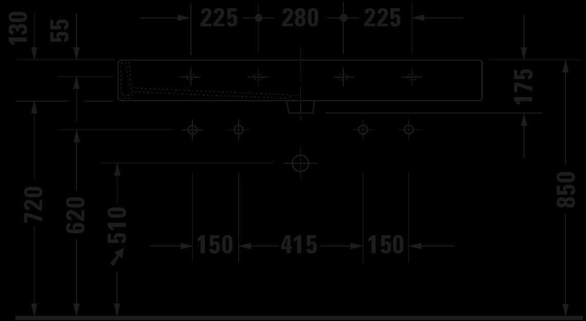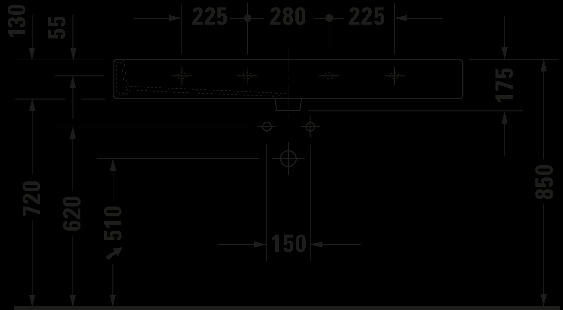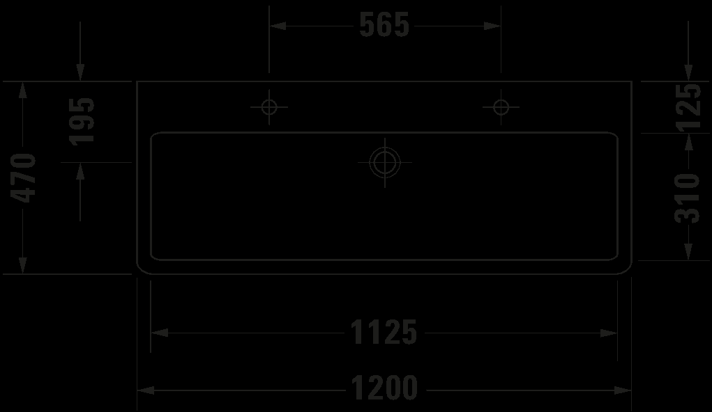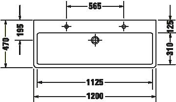 Duravit Vero vask 120x47cm, sleben underkant og 2 hanehuller