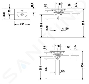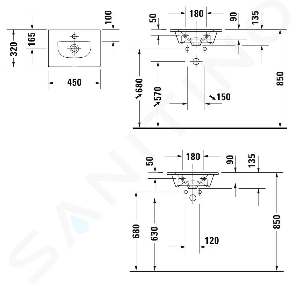 Duravit Viu håndvask, 450x320 mm, hvid porcelæn uden overløb. Håndvasken er til montering på væg eller i forbindelse med underskab og leveres med keramisk push-open bundventil.