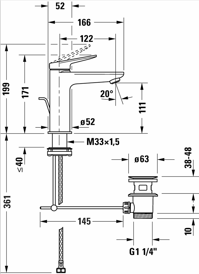 Duravit Wave Medium håndvaskarmatur med bundventil, børstet bronze