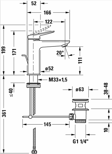 Tilslutningstype/Vandtilslutning: Fleksibel tilslutningsslange,