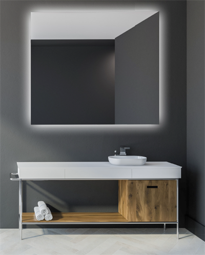 Firkantet spejl med LED lys og backlight. Spejlet er lavet af belgisk AGC MIROX eco glas.