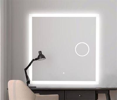Firkantet spejl med integreret LED lys, kosmetikspejl, dæmpning & farveskift - 90 x 80 cm