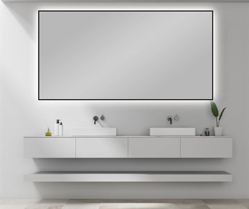 Firkantet Spejl med LED backlight og Integreret sort ramme Spejlet er lavet af belgisk AGC MIROX eco glas. - Fås i flere størrelser.