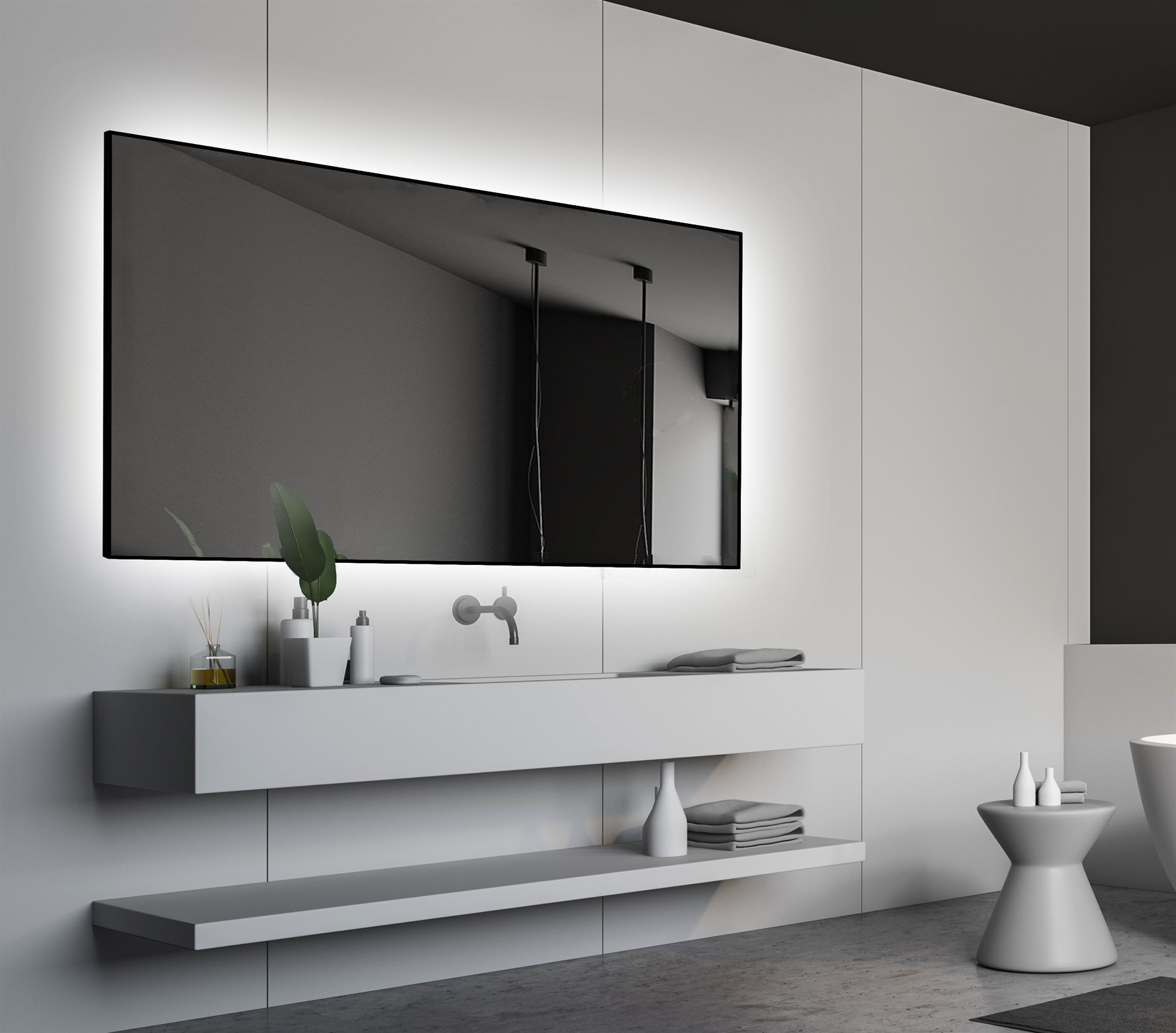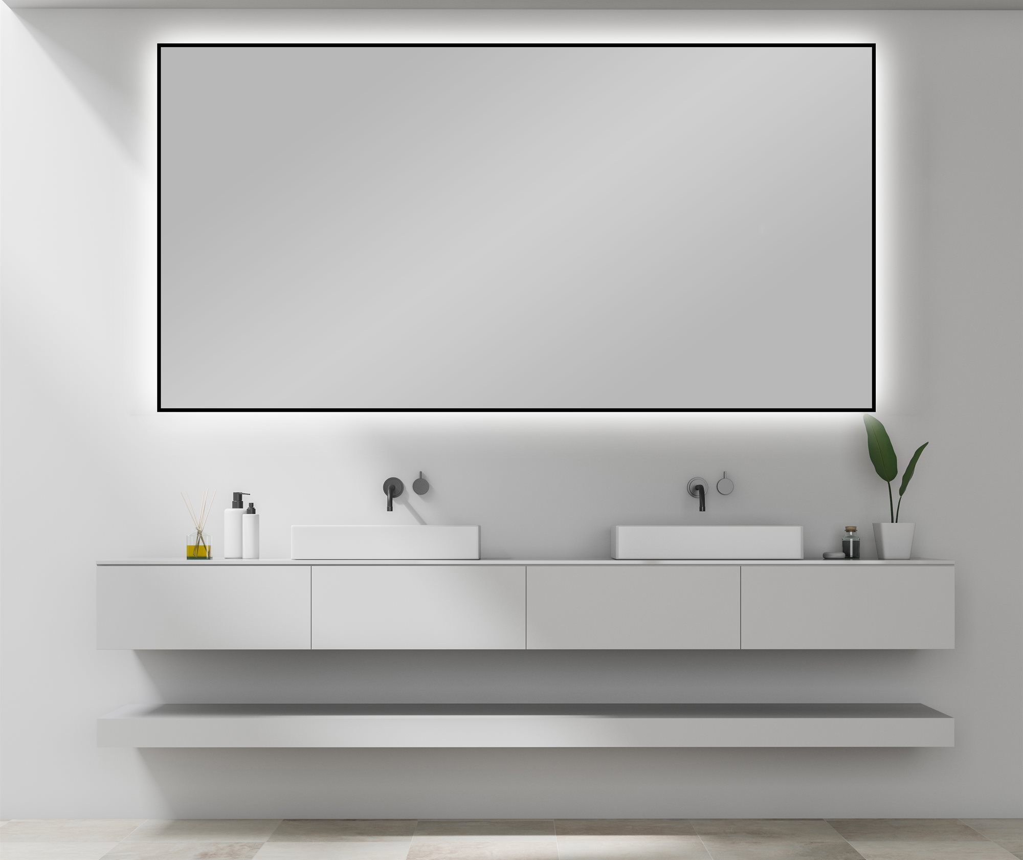 Firkantet Spejl med LED backlight og Integreret sort ramme - 120 x 80 cm