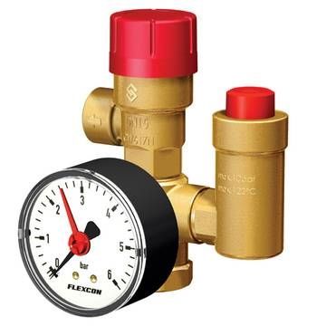 Flamco samlesæt - komplet med manometer, ludtudlader og sikkerhedsventil. leveres på 3/4" samlerør.