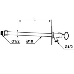 FM Mattsson udendørshane med nøgle til vægtykkelse 600 mm. selvdrænende. med typegodkendt kontraventil. vægplade: højde 106 mm., bredde 66 mm. diagonale skruehuller.