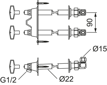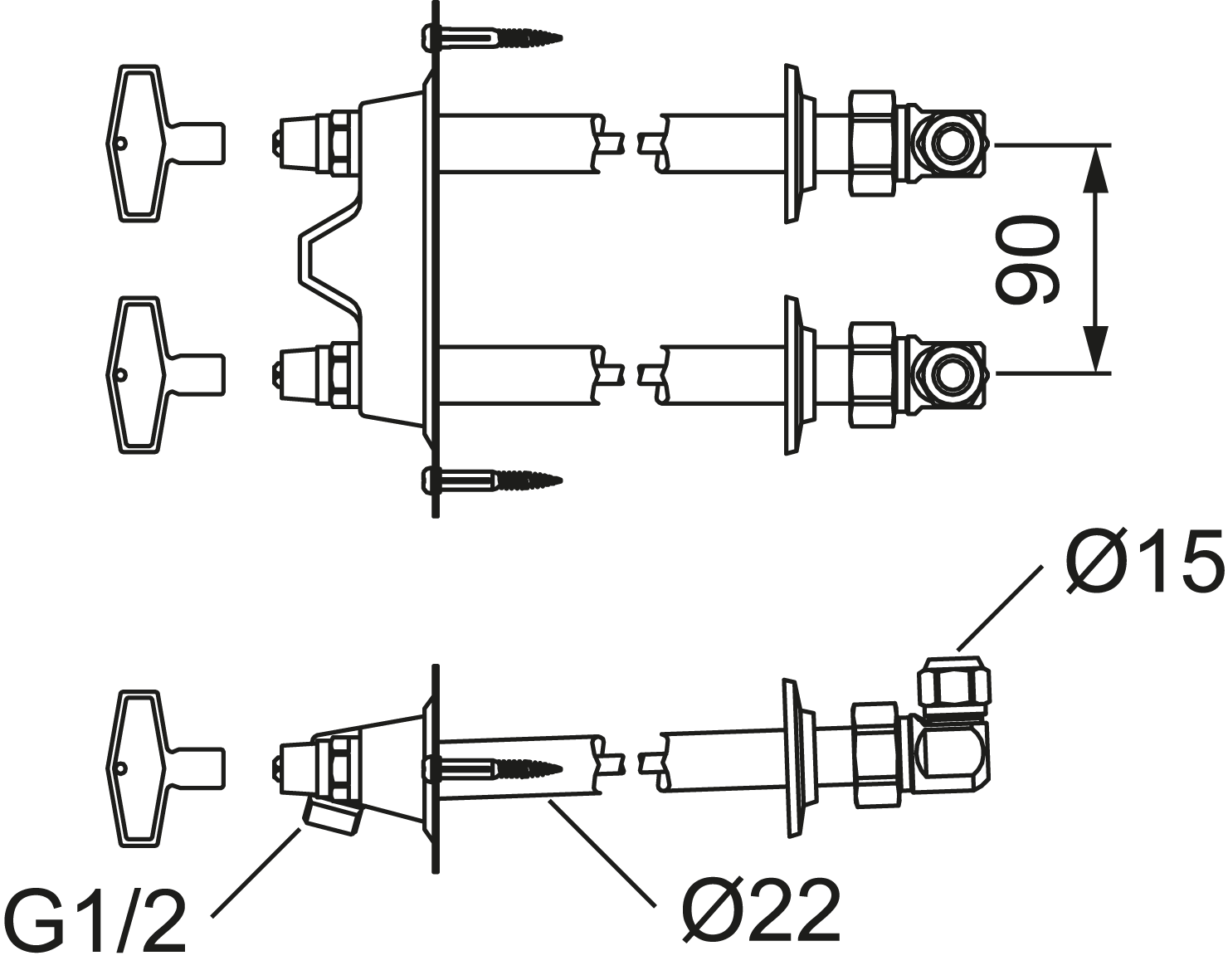 FM Mattsson dobbelt Posteventil 400 mm med nøgle selvtømmende