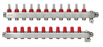 Fordelerrør eller manifold som det også kalde bruges til at fordele vandet til de enkelte kredse (rum) i anlægget. I fordelerrørene har indbygget ventiler, der muliggøre at indregulere vandmængden til de enkelte kredse (rum) samt at montere en telestat. Telestatens funktion er at åbne og lukke for vandgennemstrømningen.