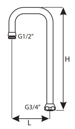 U-formet bruserrør af forkromet messing, 1500 x 330 mm - ½" gevind til hovedbruseren