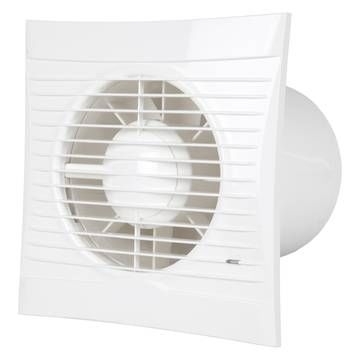 Badeværelsesventilator. Starter når fugten overskrider det selvvalgte niveau (55-90% rh). Kan placeres i både væg og loft.