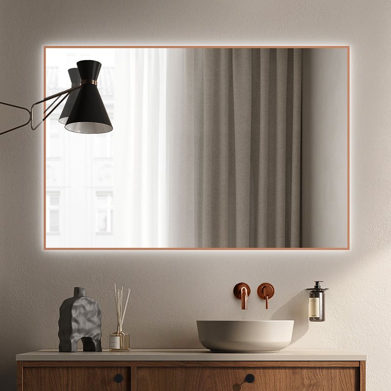 Spejlet har hele vejen rundt en integreret backlight LED-belysning med mere end 30.000 timers levetid. Dette spejl tilbyder en unik mulighed for at matche farverne på dit badeværelse, om du enten har kobber/messing, sort eller guld armaturer.