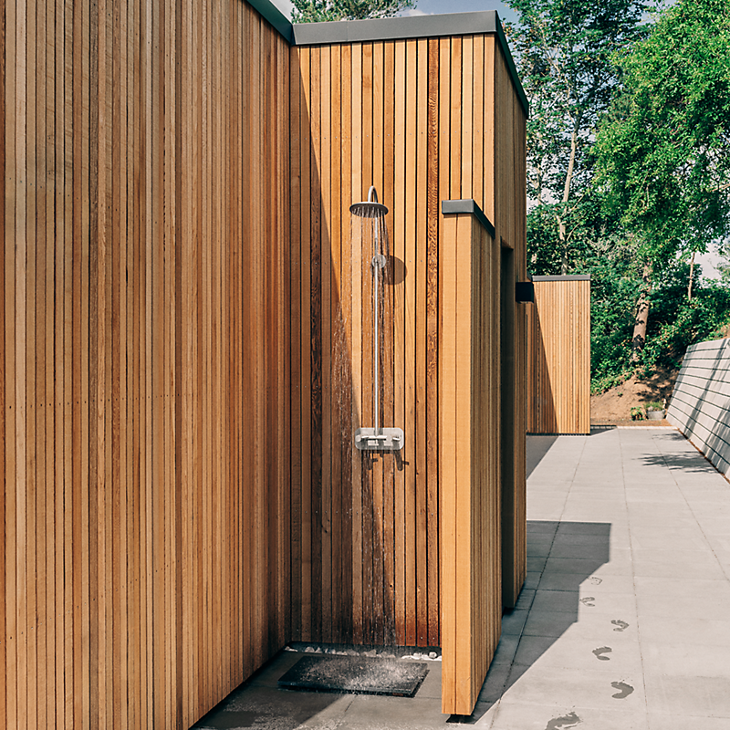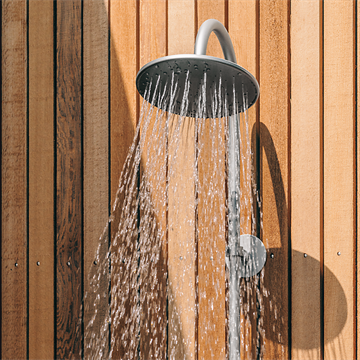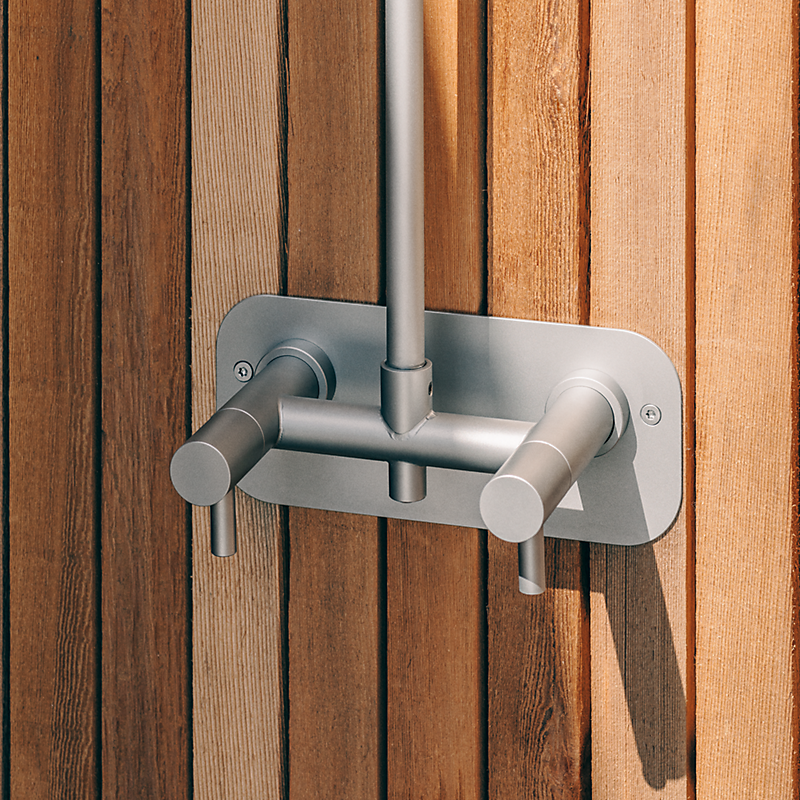 Hjertet i Frostline Duo er den store Ø180 mm hovedbruser, der leverer en blød, regn-lignende stråle, som giver en luksuriøs bruseoplevelse – perfekt efter en tur i havet, saunaen eller bare til et hurtigt udendørs skyl. Det store brusehoved sikrer en jævn fordeling af vandet og en følelse af wellness i det fri.