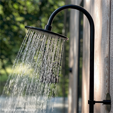 Hjertet i Frostline Duo er den store Ø180 mm hovedbruser, der leverer en blød, regn-lignende stråle, som giver en luksuriøs bruseoplevelse – perfekt efter en tur i havet, saunaen eller bare til et hurtigt udendørs skyl. Det store brusehoved sikrer en jævn fordeling af vandet og en følelse af wellness i det fri.