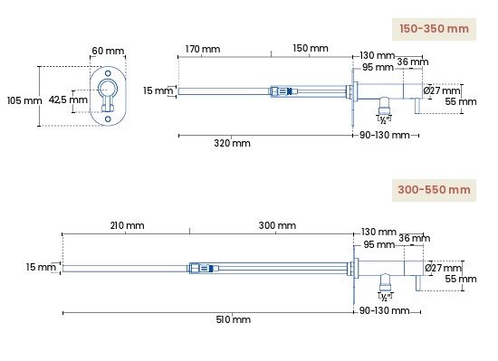 15 mm tilslutning Murtykkelser fra 300-550 mm