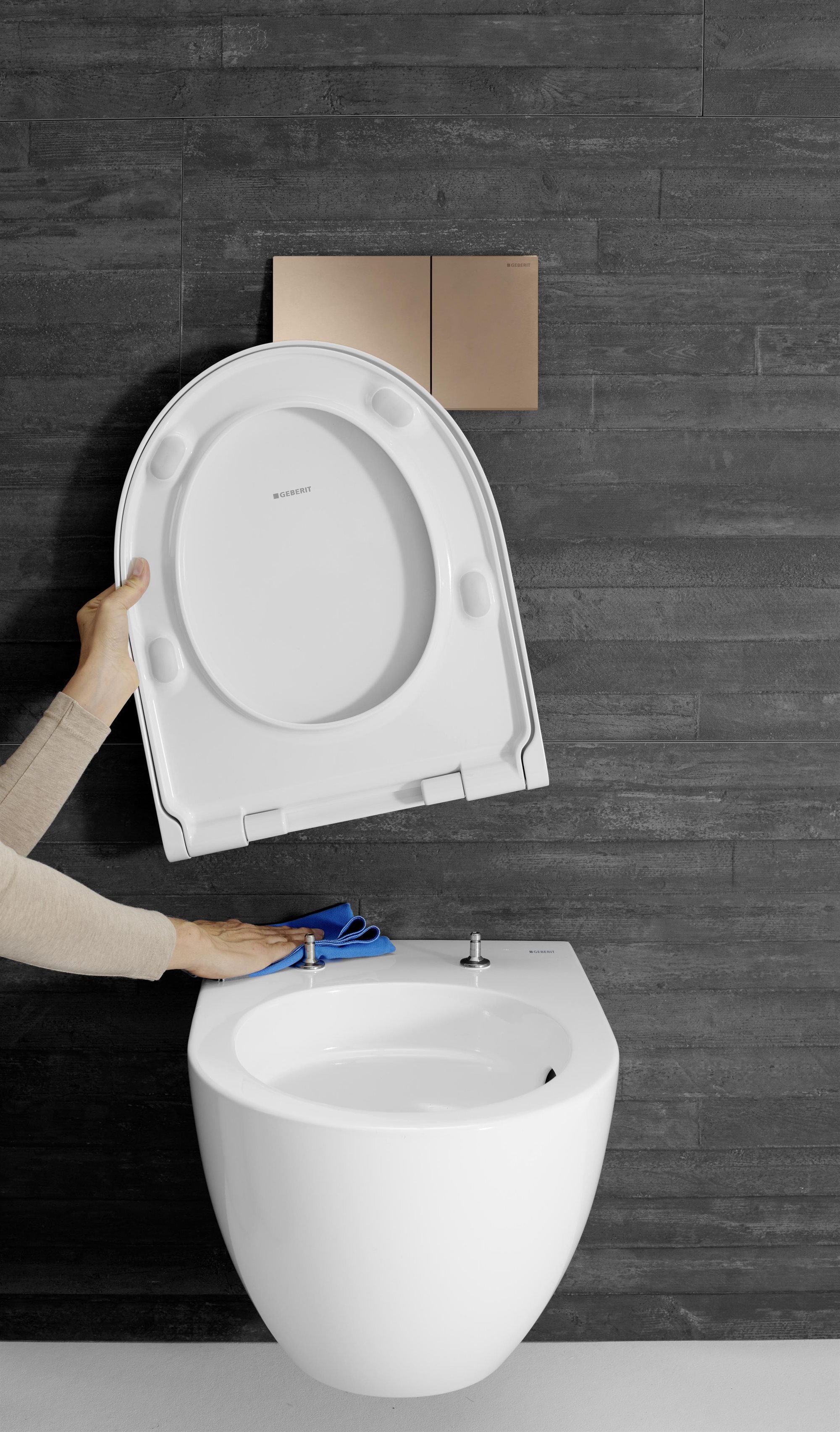 Mens konventionelle toiletter er svære, at rengøre grundet skyllekanten (rim) så har snavs og bakterier ingen steder at putte sig i rimfree toiletter fra Geberit.