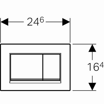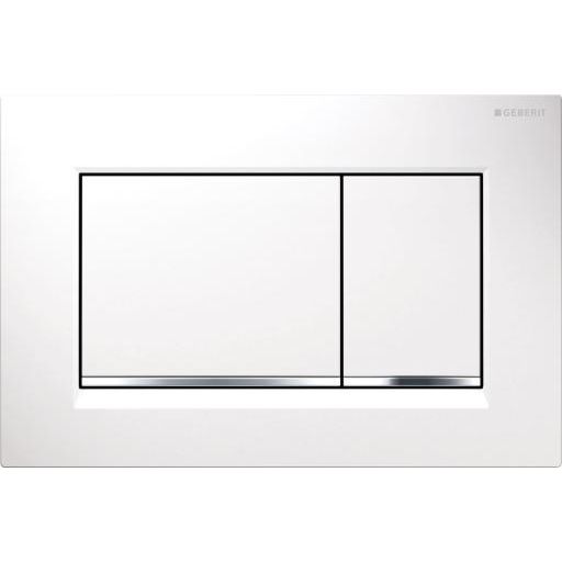 Geberit betjeningsplade Sigma30 kommer i et kvadratisk design med en designstribe og to trykknapper integreret for aktivering af henholdsvis stort og lille skyl.