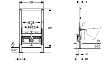 Geberit Duofix indbygningselement til bidet - lav model 82 cm