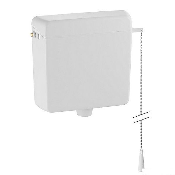 Højthængende cisterne AP123 Til vægmontering Til privat og halvoffentlig brug Til kædetræk •Kondensisoleret til rumtemperatur •Impuls380 fyldeventil •Låg uden tryk •Højthængende •Vandtilslutning til venstre / højre •Svejset skyllerørsbøjning •Enkelt-skyl Påfyldningstid (6 l) ved 3 bar fremløbstryk 30 s Påfyldningstid (9 l) ved 3 bar fremløbstryk 45 s Afløbsydelse 2,2-2,9 l/s Indstillingsområde for skyllemængde 6 / 9 l Skyllemængde, fabriksindstilling 9 l •Vandbegrænser •Kædetræk •Fastgørelsesmateriale