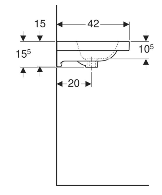 Geberit iCon Light håndvask kompakt uden hanehul: B=60cm, T=42cm