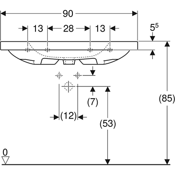 Geberit iCon Light håndvask med fralægningsplads: B=90cm, T=48cm,