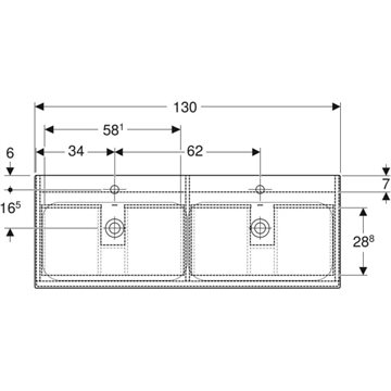Geberit / Ifö Renova Plan Møbelpakke 130 cm med dobbelt vask - Hvid højglans