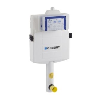 Geberit indbygningscisterne 3/6 l skyl. Kondensisoleret, vandtilgang 1/2" øverst i midten, incl. 1/2" stopventil, støjsvag svømmerventil, skyllerørsbøjning med muffe for tilslutning af ferule. Ekskl. forplade og ferulesæt.