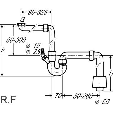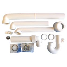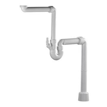 Universalvandlås til enkeltvask, hvid. Med tilgang 1½" RG omløber Ø50mm afgang. Med 1" RG tilslutning vaske eller vaskemaskine incl. slangeforskruning samt afgangsbøjning.