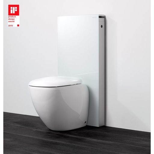 Geberit Monolith cisternemodul til gulvstående toiletskål 101, hvid glas og side paneler i aluminium