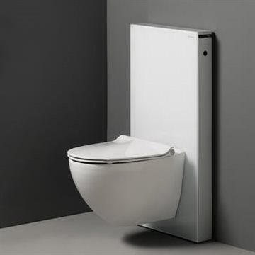 Geberit Monolith til væghængte wc skåle - Frontpanel hvidt glas med sidepanel i aluminium - ekskl. toiletskål