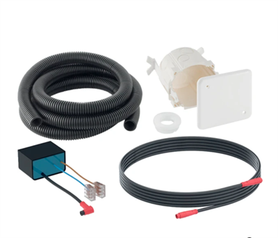 Geberit montagesæt med netdel til WC-skyllestyringer med elektronisk skyllestyring, 12 V Anvendelse: Til tungt og let byggeri (mur) Til indbygning Til forberedelse af nettilslutninger på Geberit WC-skyllestyringer Til forberedelse af nettilslutninger på geberit Duofresh moduler Egenskaber: Ændring af netspænding til lavspænding 12 V DC Indeholder: Låg til indmuringsdåse Indmuringsdåse til borehul ø 76 mm Holder til tomrør Netdel Tilslutningskabel længde 1,8 m Tomrør længde 1,5 m