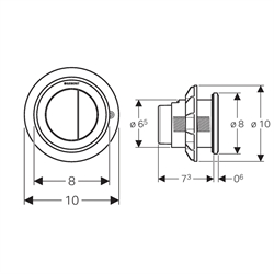 Geberit Omega10 pneumatisk skylleknap aktivere det store og det lille skyl ved hjælp af lufttryk, selve skylleknappen er forbundet med cisterne via luftslanger, det giver friheden til at placere skylleknappen i en omkreds af ca. 1 m af toilettet.