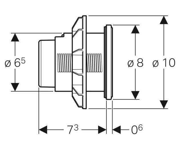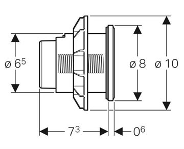 Geberit Omega01 pneumatisk skylleknap aktivere det store og det lille skyl ved hjælp af lufttryk, selve skylleknappen er forbundet med cisterne via luftslanger, det giver friheden til at placere skylleknappen i en omkreds af ca. 1 m af toilettet.