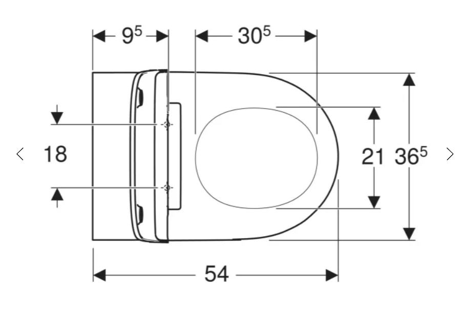 Geberit One væghængt toilet uden skyllekant med softclose sæde, hvid - låget på det medfølgende sæde overlapper selve sædet.