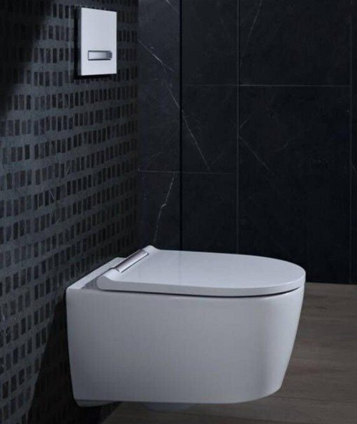 Geberit ONE væghængt toilet m/TurboFlush, og toiletsæde: hvid mat/krom