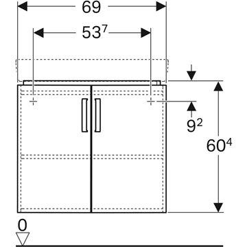 Geberit Renova Compact underskab til hjørnehåndvask, med to låger: B=69cm, H=60.4cm, T=55cm, hvid / lakeret mat, hvid / lakeret højglans