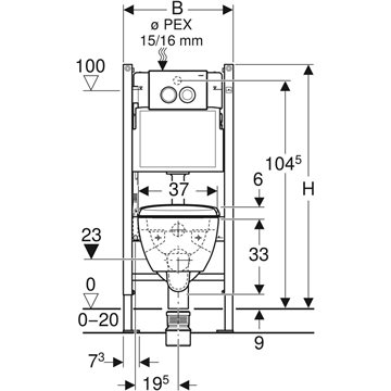 • Geberit Duofix WC-element 112 cm med Delta indbygningscisterne